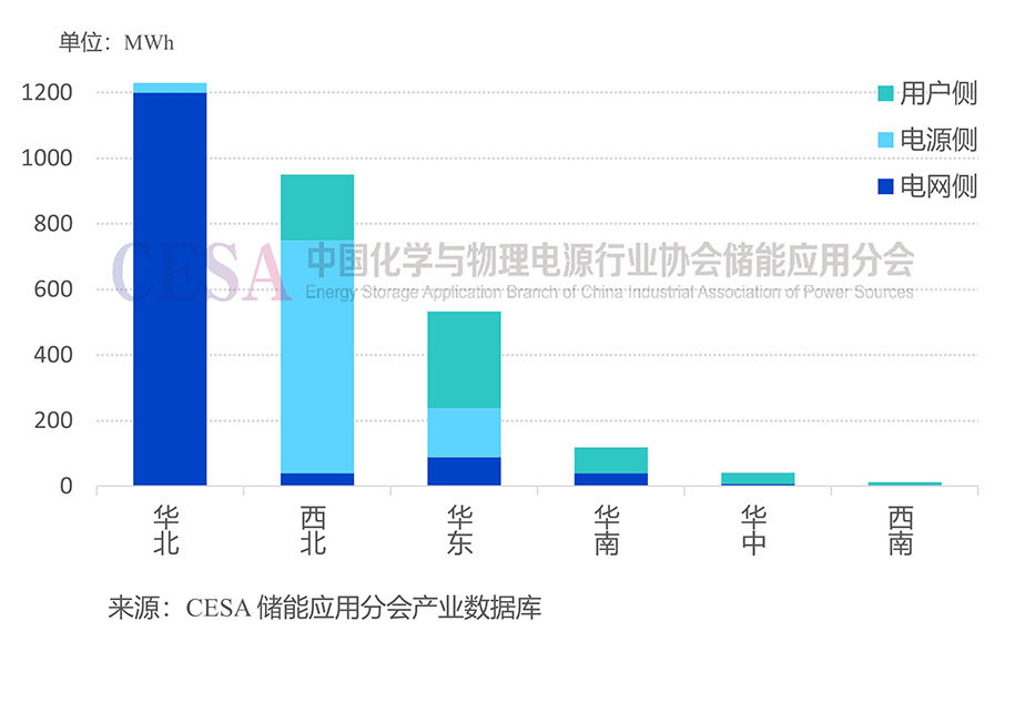 按區(qū)域來看,2月華北地區(qū)新增裝機(jī)431MW/1230MWh,容量占比42.63%。其中,電網(wǎng)側(cè)裝機(jī)1200MWh,占2月全國電網(wǎng)側(cè)新增總裝機(jī)的87.28%。西北地區(qū)新增裝機(jī)410.04MW/950.1MWh,占比32.93%。其中,電源側(cè)裝機(jī)710MWh,占全國電源側(cè)新增裝機(jī)的79.78%。華東地區(qū)新增裝機(jī)317.16MW/532.99MWh,占比18.47%。其中,用戶側(cè)裝機(jī)294.79MWh,占全國用戶側(cè)新增裝機(jī)的47.49%。此外,華南地區(qū)新增裝機(jī)59.42MW/118.91MWh,華中、西南地區(qū)新增裝機(jī)均在50MWh以下。