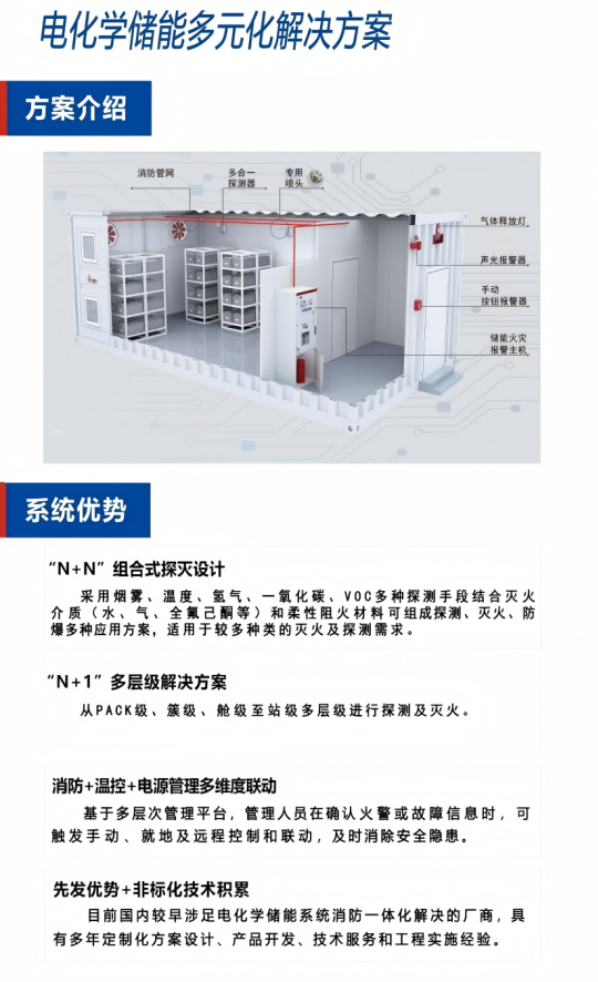 聚焦儲能安全,創(chuàng)新解決方案,本次展會中科貝倫將為客戶重點展示電化學儲能電站全系列消防解決方案,針對儲能場景的高風險特性,推出從Pack級、簇級、艙級到站級的定制化消防系統(tǒng),搭載預制式全氟己酮火災抑制系統(tǒng),實現快速響應與高效抑制。