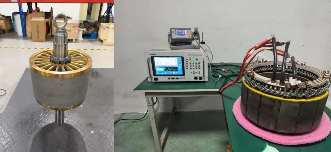 目前公司抽蓄電站均應(yīng)用IE3水平的定速三相異步電機(jī),運(yùn)行效率和噪聲存在較大提升和改善空間。該超高效驅(qū)動(dòng)電機(jī)由科研院技術(shù)專家馬一鳴帶領(lǐng)團(tuán)隊(duì)自主研發(fā),電機(jī)采用永磁電機(jī)加變頻器的高度集成機(jī)構(gòu)替代傳統(tǒng)感應(yīng)電機(jī),在拓?fù)浣Y(jié)構(gòu)、制造材料、仿真優(yōu)化、控制策略和智能監(jiān)測(cè)上應(yīng)用了多項(xiàng)創(chuàng)新技術(shù),進(jìn)一步提升電機(jī)綜合性能。