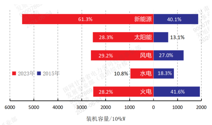 甘肅加速完成以煤電為主向以風(fēng)光新能源為主體電源的根本性轉(zhuǎn)變。自2015年至今,甘肅省新增裝機(jī)4320萬(wàn)千瓦,其中新增新能源3630萬(wàn)千瓦,新能源裝機(jī)占比由40.1%提升至61.3%,新能源利用率由63.3%提升至95.6%。