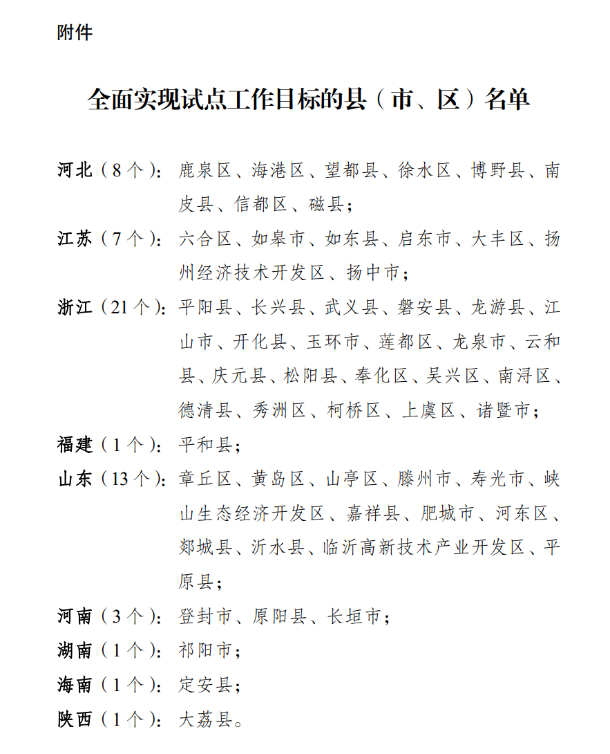 附件:全面實現試點工作目標的縣(市、區(qū))名單