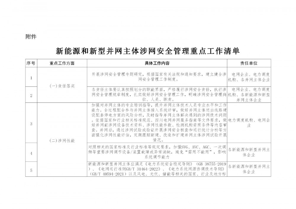 附件:新能源和新型并網主體涉網安全管理重點工作清單