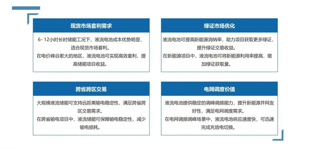 在 6 至 12 小時(shí)的長(zhǎng)時(shí)儲(chǔ)能工況下,液流電池展現(xiàn)出極為顯著的成本優(yōu)勢(shì),特別適用于在現(xiàn)貨市場(chǎng)開(kāi)展套利操作。
