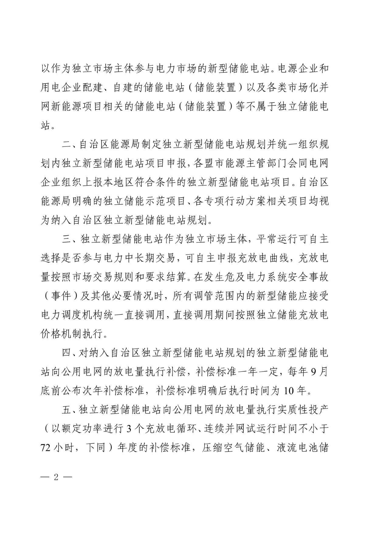 對納入自治區(qū)獨立新型儲能電站規(guī)劃的獨立新型儲能電站向公用電網(wǎng)的放電量執(zhí)行補(bǔ)償,補(bǔ)償標(biāo)準(zhǔn)一年一定,每年9月底前公布次年補(bǔ)償標(biāo)準(zhǔn),補(bǔ)償標(biāo)準(zhǔn)明確后執(zhí)行時間為10年。