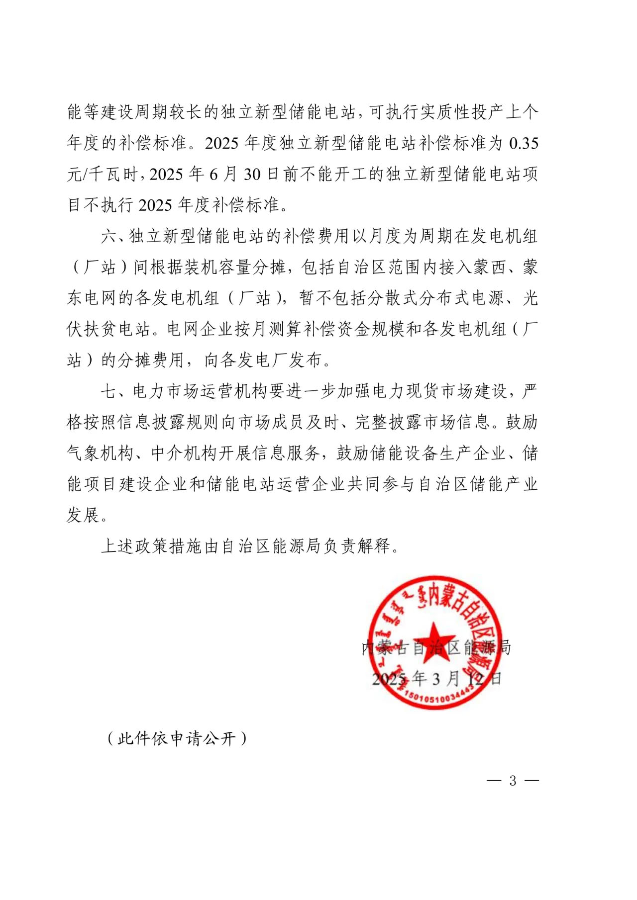 中國儲能網(wǎng)訊:日前,內(nèi)蒙古自治區(qū)能源局下發(fā)關(guān)于加快新型儲能建設(shè)的通知(內(nèi)能源電力字(2025)120號)。通知重點圍繞獨立儲能界定、參與電力市場、容量補(bǔ)償、容量補(bǔ)償費用疏導(dǎo)等內(nèi)容。