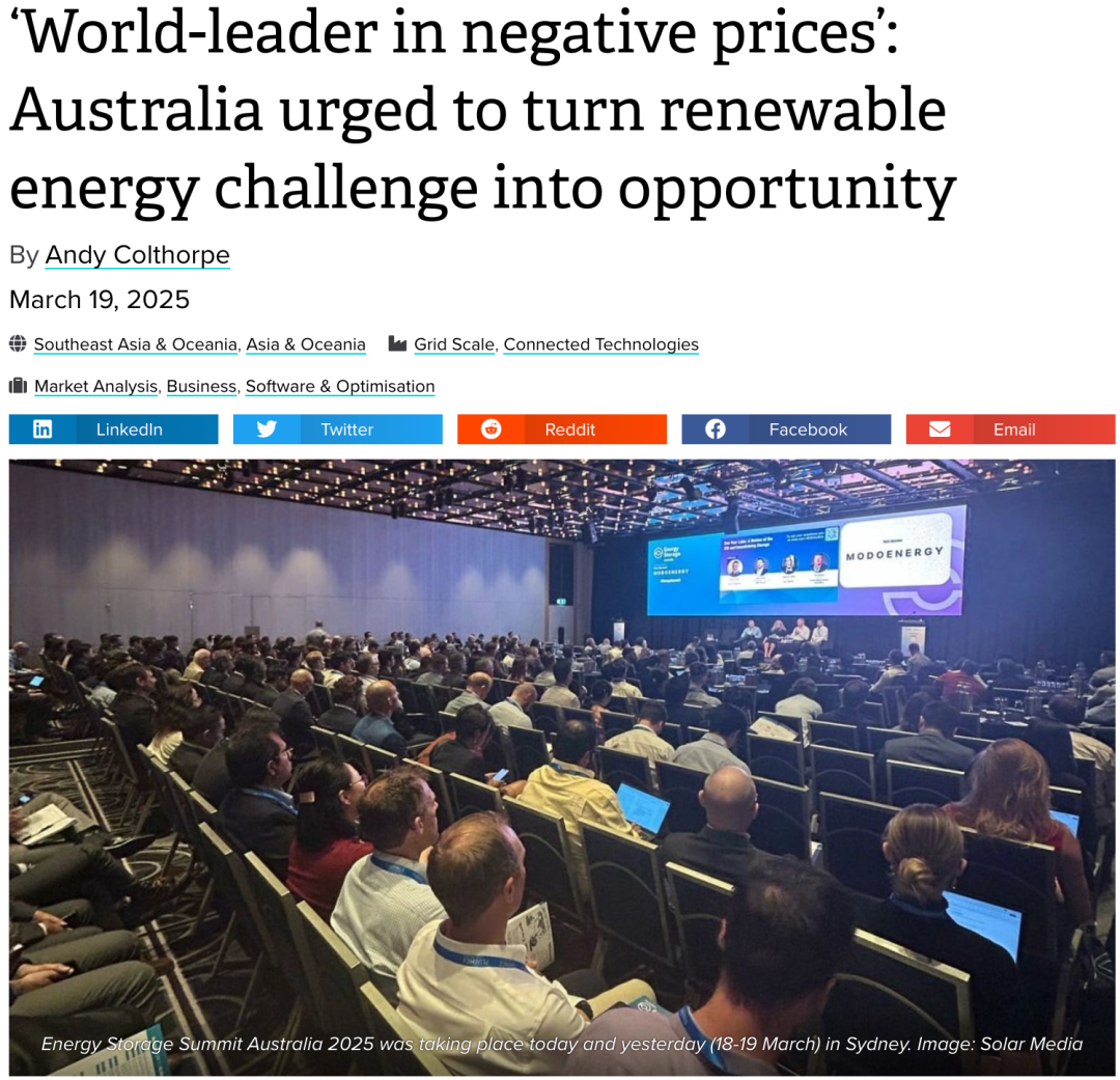 中國儲能網(wǎng)訊:當(dāng)澳大利亞的太陽能光伏發(fā)電達(dá)到峰值并在中午時分產(chǎn)生盈余時,就會出現(xiàn)負(fù)電價。這意味著項目和投資人基本上不得不付錢讓人們接受他們的能源。澳大利亞能源市場運營商(AEMO)1月份發(fā)布的數(shù)據(jù)顯示,在2024年第四季度,澳大利亞最大的互聯(lián)電力市場——國家電力市場(NEM)——的負(fù)電價事件發(fā)生時間占23.1%,該市場覆蓋了南澳大利亞和東南部的五個州。澳大利亞氣候能源金融智庫的創(chuàng)始人兼董事蒂姆·巴克利提出了一個觀點,顛覆了人們對負(fù)電價事件的傳統(tǒng)看法,將其描述為“一種優(yōu)勢”。巴克利指出,澳大利亞在批發(fā)市場中擁有“世界領(lǐng)先的負(fù)電價”。在維多利亞州和南澳大利亞州,去年有24%和26%的時間出現(xiàn)了負(fù)電價,這一比例大約是歐洲電力市場的四倍。