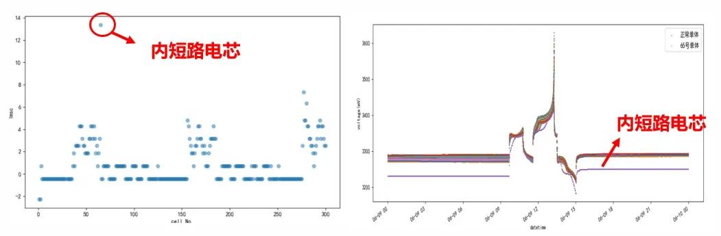 內(nèi)短路是大多數(shù)電池?zé)崾Э氐闹匾?,歷史儲能電站熱失控事故案例中有90%均源自內(nèi)短路。內(nèi)短路從開始出現(xiàn)異常到發(fā)生熱失控會經(jīng)歷數(shù)十到數(shù)百小時,在故障早期會表現(xiàn)電壓曲線上某些特征量的異常。若電站能準(zhǔn)確識別、檢出早期內(nèi)短路電池并及時更換,則可以遏制其最終發(fā)展為熱失控。