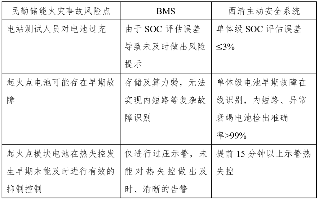 表2:西清主動安全系統(tǒng)與BMS的安全防控能力比較