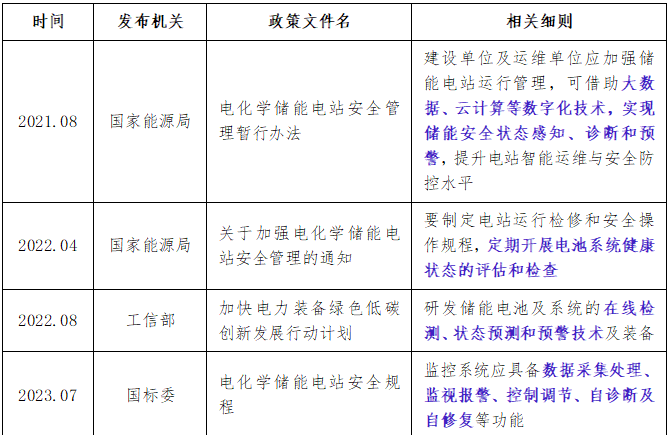 表4. 加強儲能主動安全建設(shè)的政策號召