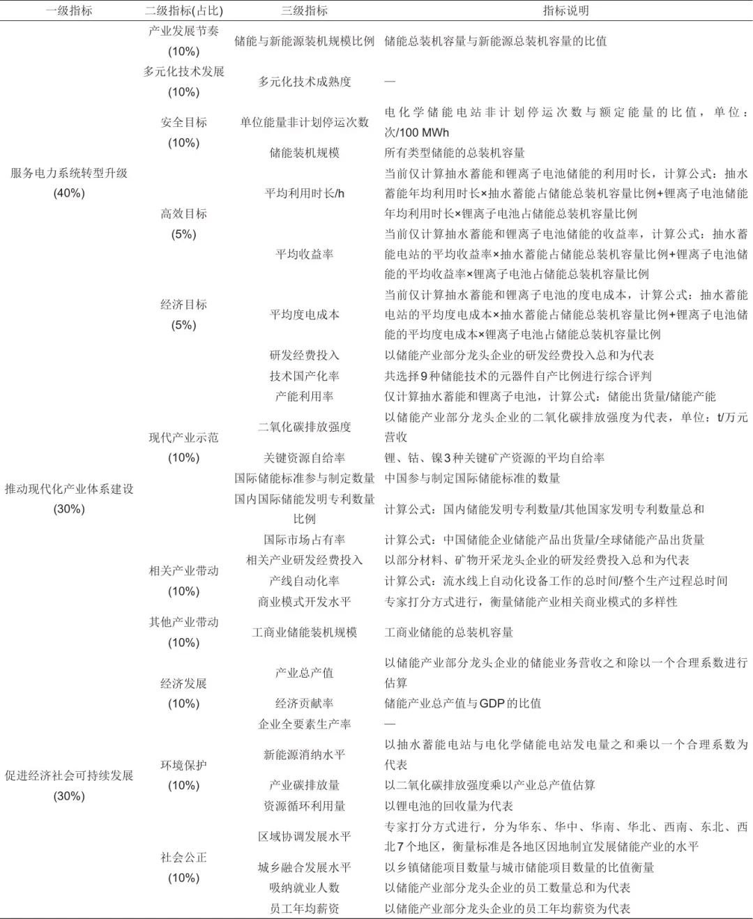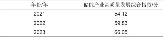 表1 儲能產(chǎn)業(yè)高質(zhì)量發(fā)展綜合評價(jià)指標(biāo)體系