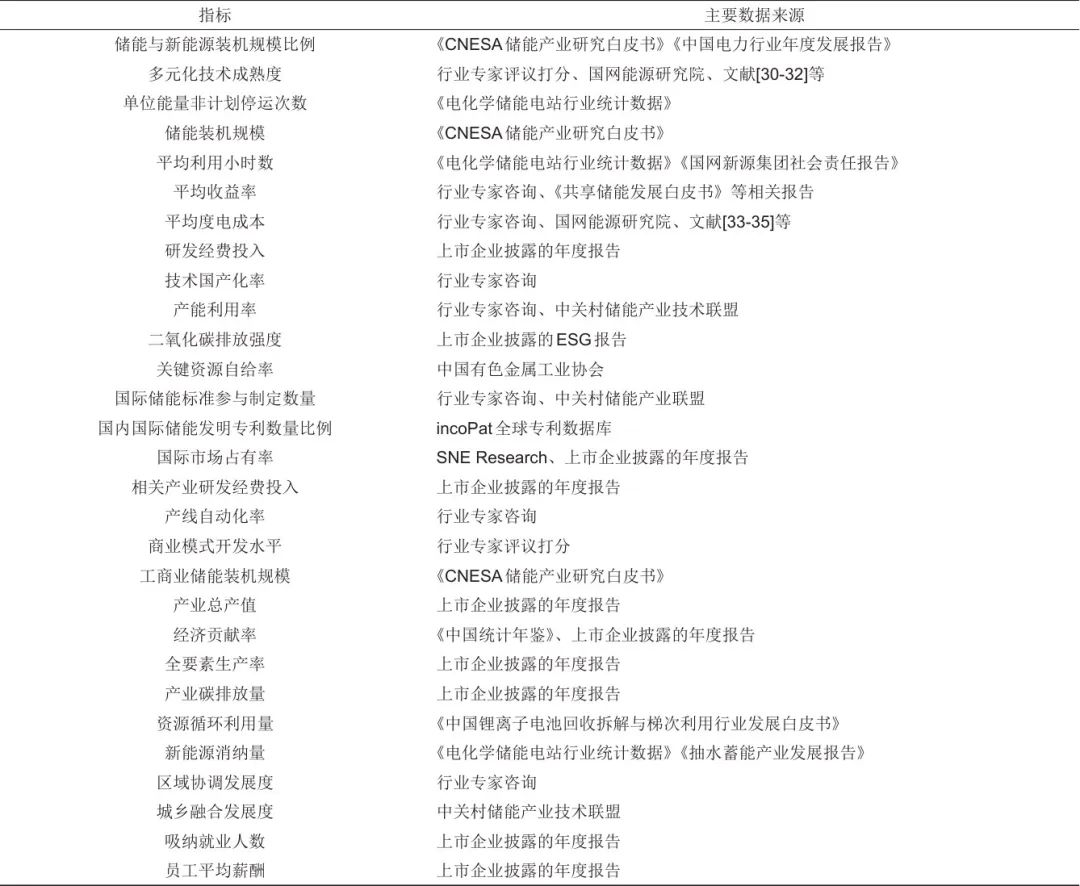表3 儲能產(chǎn)業(yè)高質(zhì)量發(fā)展評價(jià)體系指標(biāo)數(shù)據(jù)來源