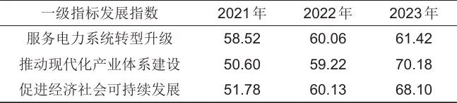 圖2 “服務(wù)電力系統(tǒng)轉(zhuǎn)型升級”維度的二級指標(biāo)發(fā)展指數(shù)