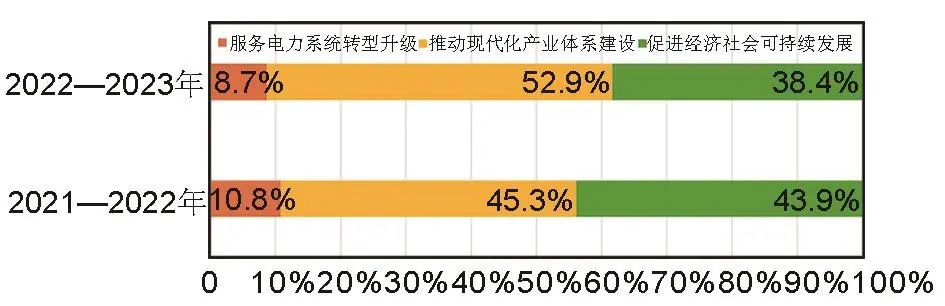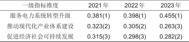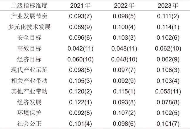 圖1展示了3個(gè)一級指標(biāo)對儲能產(chǎn)業(yè)高質(zhì)量發(fā)展指數(shù)的貢獻(xiàn)率,由圖1可知,在2021—2023年間,儲能產(chǎn)業(yè)高質(zhì)量發(fā)展的主要驅(qū)動(dòng)力來源于“推動(dòng)現(xiàn)代化產(chǎn)業(yè)體系建設(shè)”維度和“促進(jìn)經(jīng)濟(jì)社會可持續(xù)發(fā)展”維度,合計(jì)貢獻(xiàn)率保持在90%左右,相比之下“服務(wù)電力系統(tǒng)轉(zhuǎn)型升級”維度的推動(dòng)作用顯得較為微弱。儲能產(chǎn)業(yè)高質(zhì)量發(fā)展正在經(jīng)歷階段性失調(diào),基本目標(biāo)的推進(jìn)與其衍生目標(biāo)的實(shí)現(xiàn)之間出現(xiàn)了顯著的時(shí)間差與優(yōu)先級錯(cuò)配。這種階段性失衡符合多數(shù)新興產(chǎn)業(yè)的發(fā)展規(guī)律,需求的快速增長往往能迅速吸引資本匯聚,催生規(guī)?;a(chǎn),而真正實(shí)現(xiàn)以高品質(zhì)產(chǎn)品為核心的正向市場反饋,則是一個(gè)復(fù)雜且耗時(shí)的過程,要求技術(shù)沉淀、市場成熟度及政策環(huán)境的共同優(yōu)化。盡管這種階段性失衡可被視為儲能產(chǎn)業(yè)高質(zhì)量發(fā)展自然路徑的一部分,但是仍然亟須得到改善。