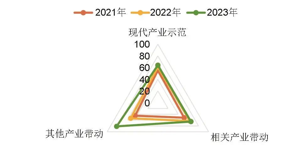 圖4 2021—2023年“現(xiàn)代產(chǎn)業(yè)示范”的三級指標(biāo)變化