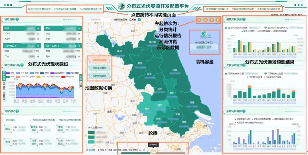 為解決光伏資源摸排難、接入電網(wǎng)影響評估難等問題,國網(wǎng)江蘇電力提前謀劃,去年5月建成了我國首個(gè)分布式光伏資源開發(fā)配置平臺,實(shí)現(xiàn)江蘇范圍內(nèi)屋頂分布式光伏資源的精準(zhǔn)定位、電網(wǎng)承載力科學(xué)評估。平臺可通過分析區(qū)域光伏承載力薄弱點(diǎn),提出優(yōu)化光伏接入、促進(jìn)就近消納等建議。