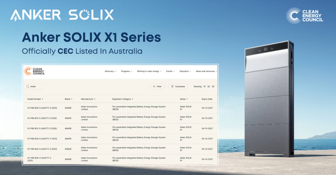 中國儲(chǔ)能網(wǎng)訊:近日,Anker SOLIX自主研發(fā)的Anker SOLIX X1 Hybrid儲(chǔ)能系統(tǒng)成功通過澳大利亞清潔能源委員會(huì)(Clean Energy Council, CEC)認(rèn)證,正式躋身全球少數(shù)具備澳洲市場(chǎng)準(zhǔn)入資質(zhì)的儲(chǔ)能供應(yīng)商行列。至此,Anker SOLIX X1全系產(chǎn)品均通過CEC認(rèn)證,此次認(rèn)證不僅是對(duì)Anker SOLIX能源技術(shù)實(shí)力的權(quán)威認(rèn)可,更標(biāo)志著公司在全球化戰(zhàn)略布局中邁出關(guān)鍵一步。