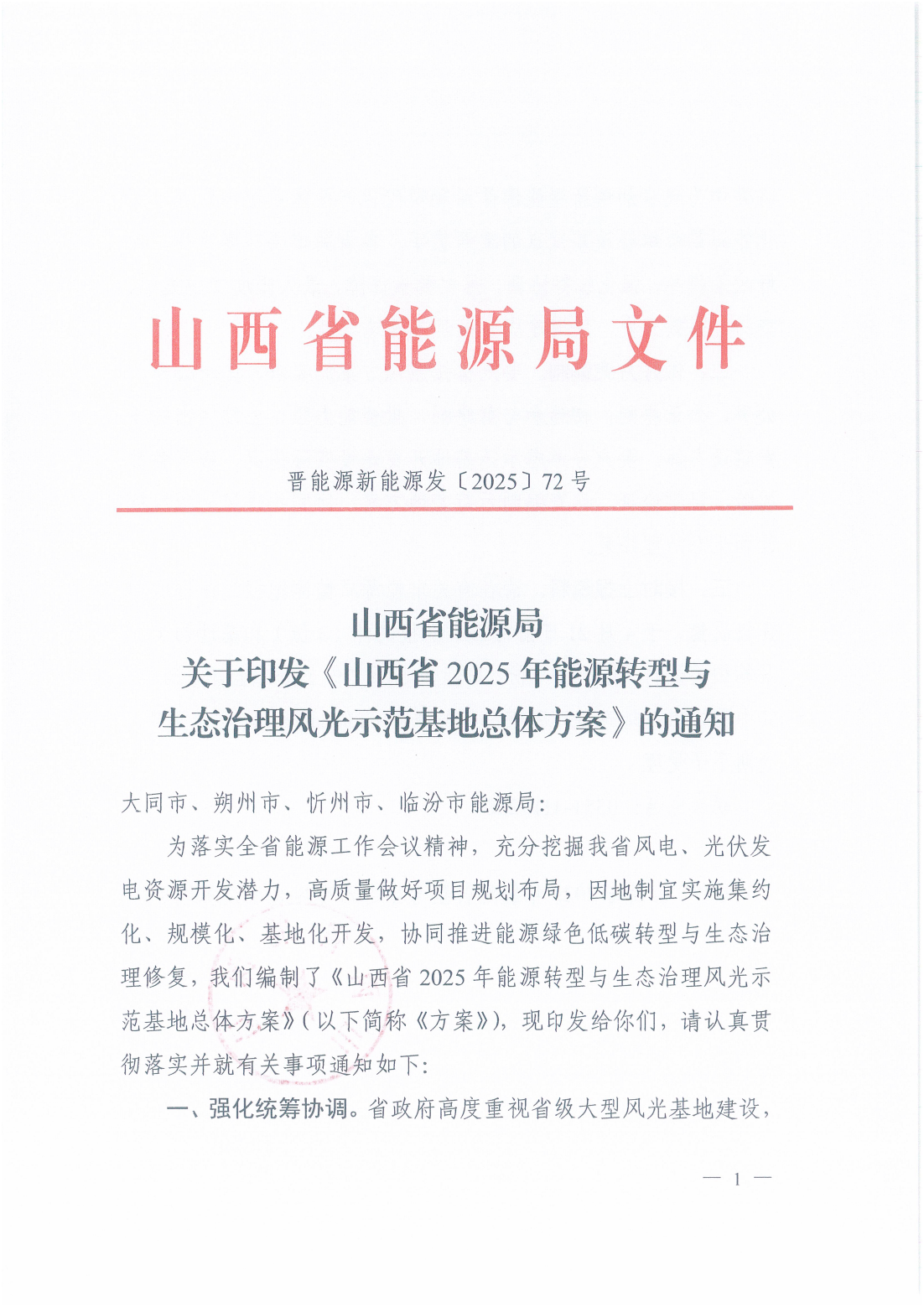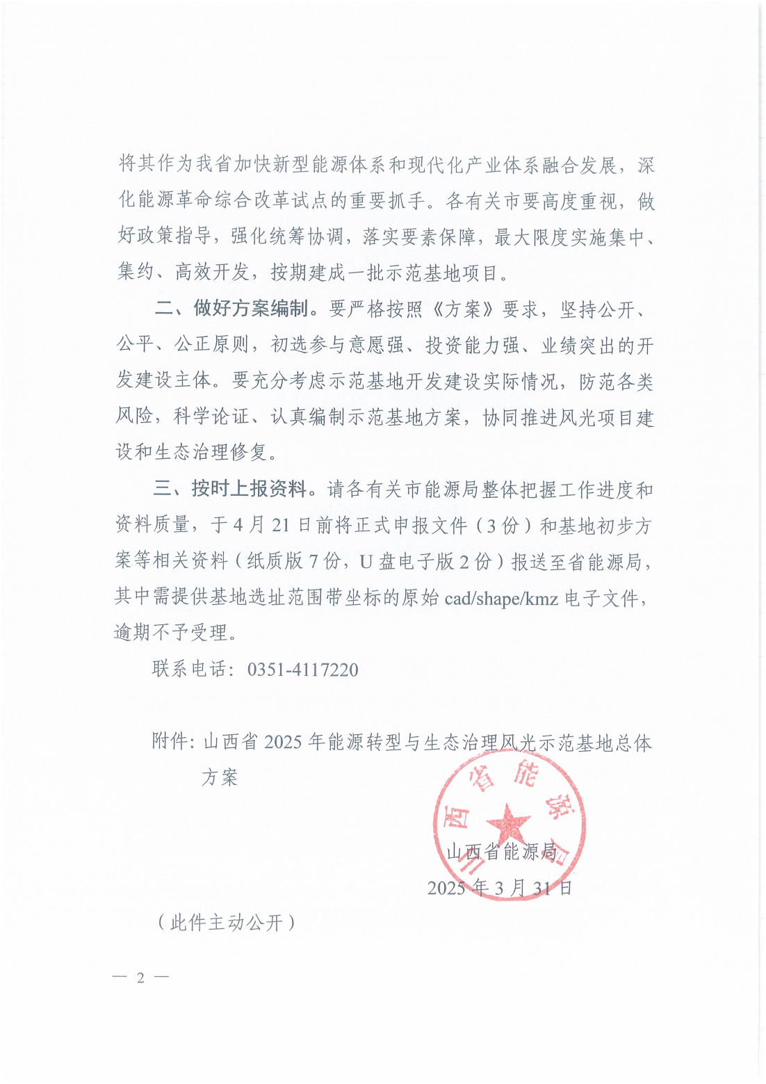 中國儲能網(wǎng)訊:3月31日,山西能源局印發(fā)《山西省2025年能源轉(zhuǎn)型與生態(tài)治理風(fēng)光示范基地總體方案》,文件提出因地制宜實施集約化、規(guī)?;⒒鼗_發(fā),協(xié)同推進(jìn)能源綠色低碳轉(zhuǎn)型與生態(tài)治理修復(fù)。