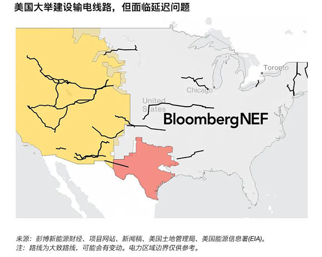 彭博新能源財(cái)經(jīng)追蹤的美國(guó)跨區(qū)域輸電線路的長(zhǎng)度