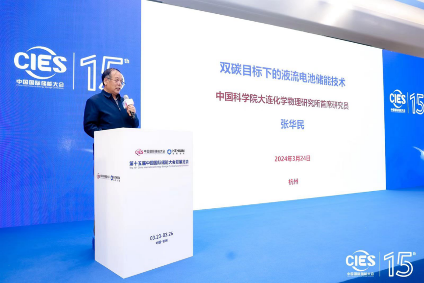 在3月24日上午的液流電池專場(chǎng)專場(chǎng)中,中國科學(xué)院大連化學(xué)物理研究所首席研究員張華民作了題為《雙碳目標(biāo)下的液流電池儲(chǔ)能技術(shù)》的主旨演講。