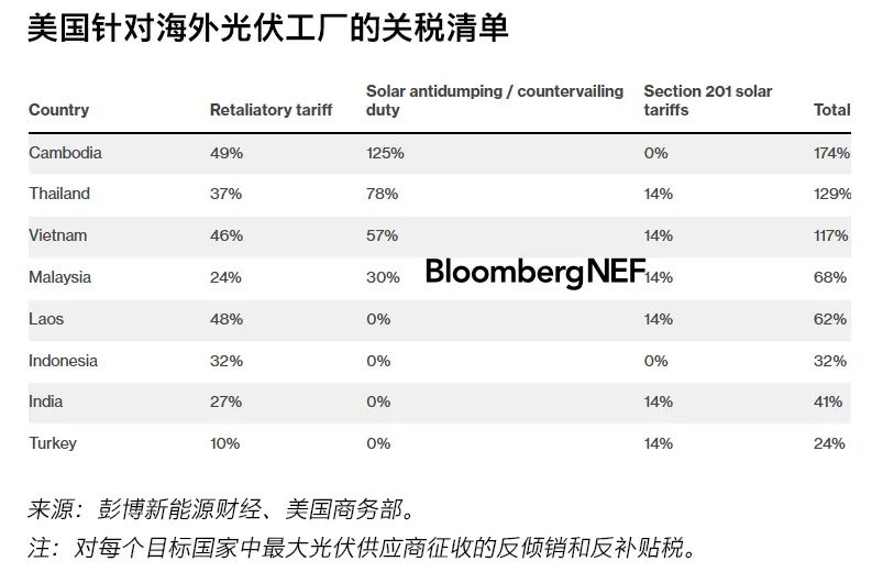 土耳其擁有6GW電池片產(chǎn)能,面臨的總關稅稅率僅為24%,但其生產(chǎn)成本可能高于印度和東南亞。不過,在豁免報復性關稅后,土耳其仍有可能成為對美出口的最大贏家。