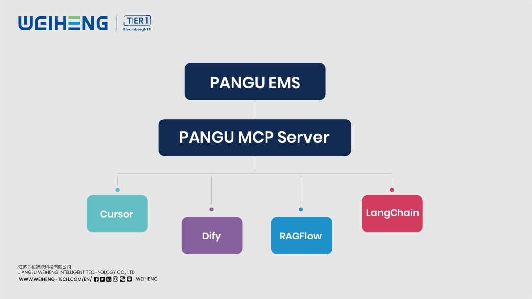 為恒智能前瞻性地意識(shí)到 MCP 協(xié)議的潛力,在業(yè)內(nèi)率先將 MCP 協(xié)議全面集成到 PANGU EMS 系統(tǒng)。從此,PANGU EMS 擁有了開(kāi)放的 AI 接口,可以與各種遵循 MCP 標(biāo)準(zhǔn)的 AI 工具和平臺(tái)無(wú)縫對(duì)接,讓原本“孤立”的儲(chǔ)能系統(tǒng)升級(jí)為可無(wú)限拓展的智能中樞。