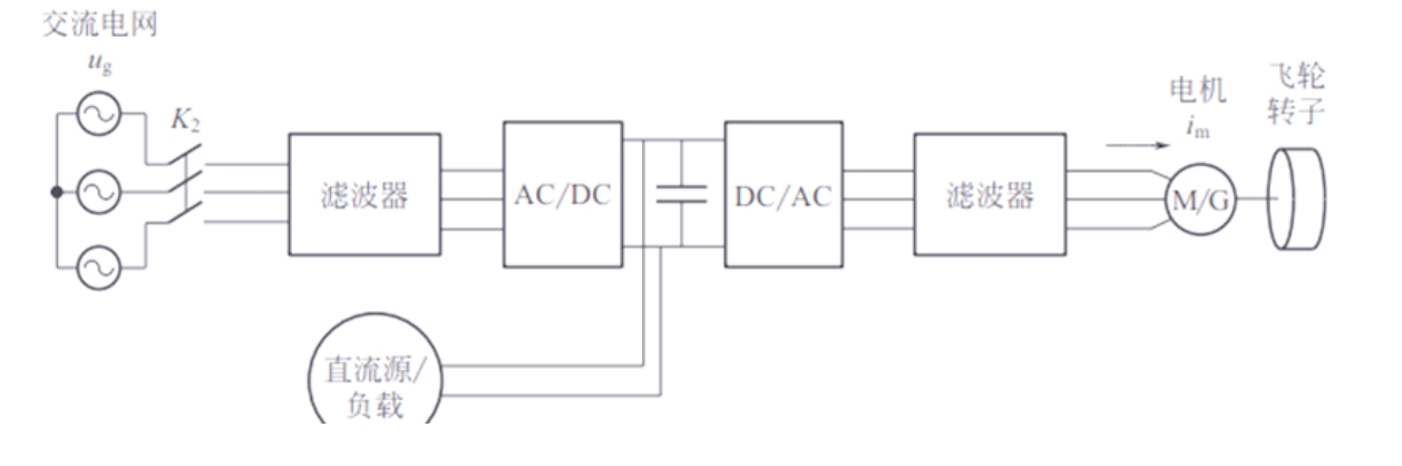 在飛輪儲(chǔ)能系統(tǒng)的電氣拓?fù)浣Y(jié)構(gòu)中,我們通常會(huì)看到儲(chǔ)能變流器,它負(fù)責(zé)將飛輪儲(chǔ)能系統(tǒng)與交流電網(wǎng)相連。為了確保并網(wǎng)過程的順利進(jìn)行,可能會(huì)需要增加機(jī)側(cè)濾波器來降低電機(jī)電流中的諧波成分,從而減少電機(jī)的發(fā)熱問題。當(dāng)飛輪儲(chǔ)能系統(tǒng)直接與交流電網(wǎng)相連時(shí),為了滿足并網(wǎng)標(biāo)準(zhǔn),通常還會(huì)加入網(wǎng)側(cè)濾波器對(duì)注入電網(wǎng)的電流進(jìn)行濾波處理。此外,由于飛輪儲(chǔ)能系統(tǒng)需要兼顧充電與放電等多種功能,因此儲(chǔ)能變流器和電機(jī)變流器都必須具備能量雙向流動(dòng)的能力。