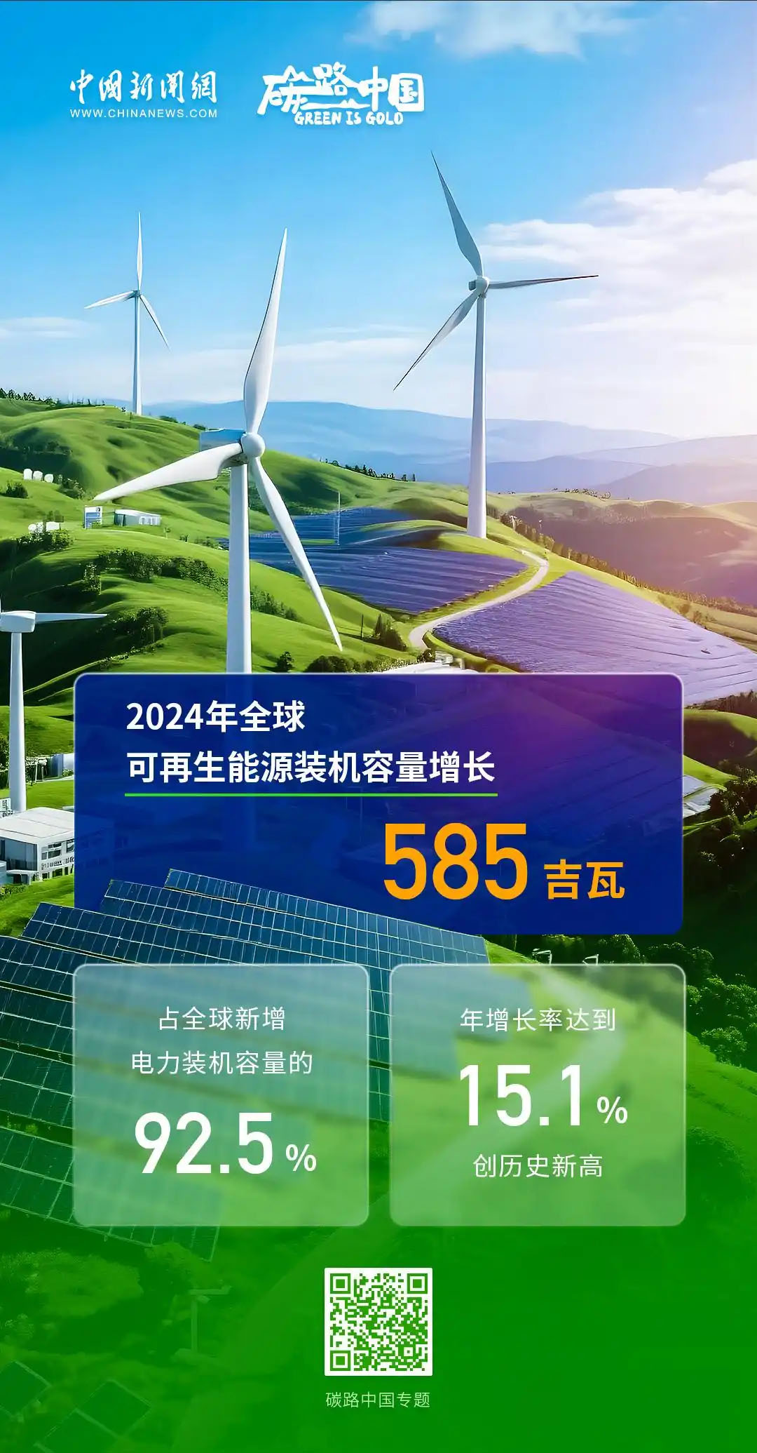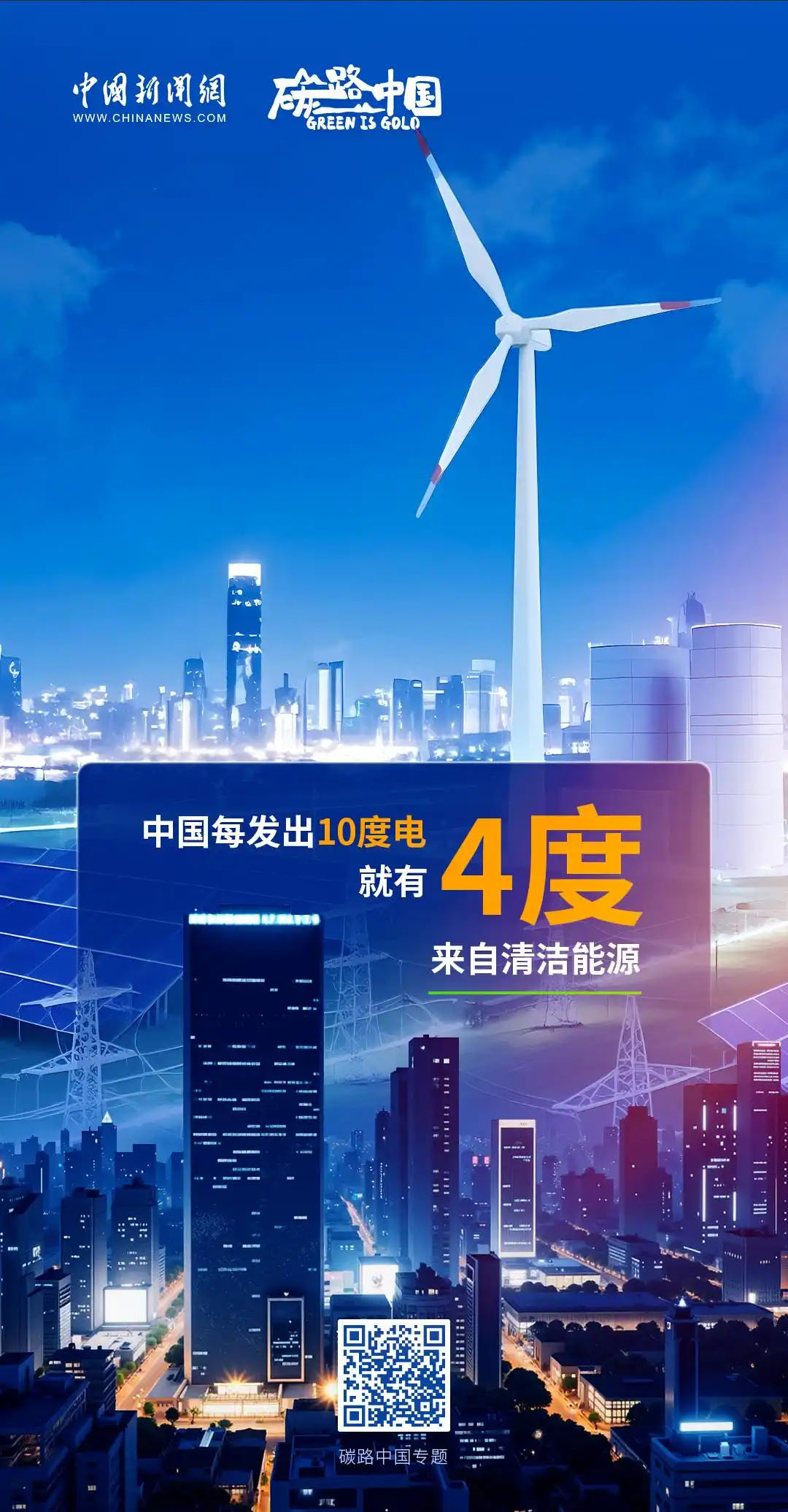 最新數(shù)據(jù)顯示,2024年,中國全國可再生能源發(fā)電量已超3.4萬億千瓦時。如今,中國每發(fā)出的10度電中就有4度來自清潔能源。