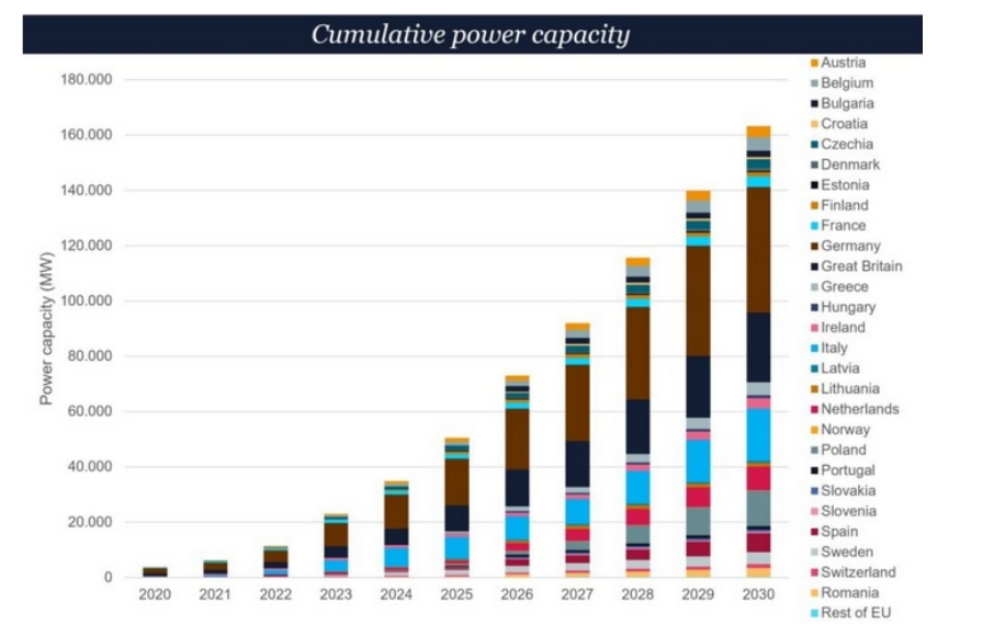 到2030年歐洲儲能系統(tǒng)部署規(guī)模將快速增長
