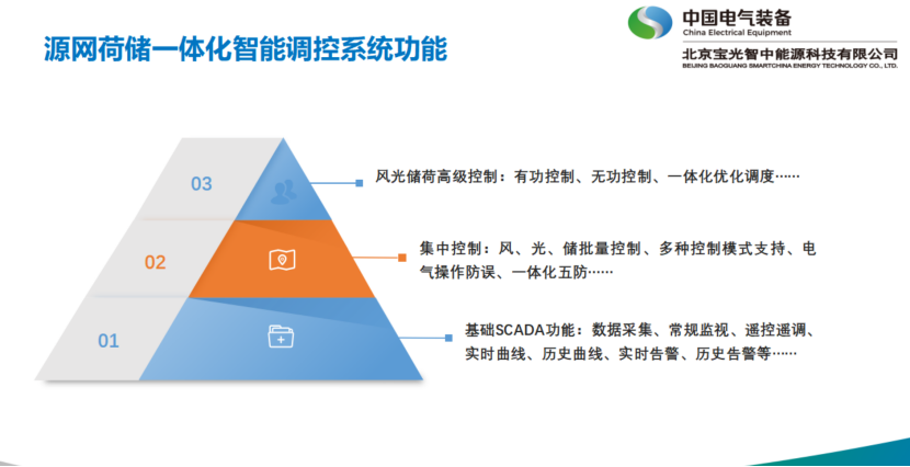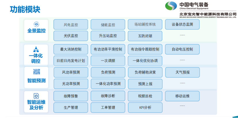 1.電源側(cè):要求新能源發(fā)電與就地負(fù)荷配套,原則上不允許向電網(wǎng)反送電,僅允許從電網(wǎng)獲取必要支撐。這種模式需要構(gòu)建源網(wǎng)荷儲一體化智能調(diào)控系統(tǒng),實現(xiàn)與省調(diào)、地調(diào)的上下級協(xié)同,通過升壓站接口對風(fēng)光儲設(shè)備進行集中調(diào)度和協(xié)調(diào)控制。系統(tǒng)功能架構(gòu)主要包含三個層次:基礎(chǔ)監(jiān)視控制、集中快速控制和分級優(yōu)化調(diào)度,重點解決風(fēng)光儲最優(yōu)消納與電網(wǎng)安全運行的平衡問題。該系統(tǒng)功能可劃分為四大模塊:全景監(jiān)控模塊負(fù)責(zé)場站常規(guī)監(jiān)測和關(guān)鍵指標(biāo)分析;協(xié)同控制模塊實現(xiàn)與電網(wǎng)的聯(lián)合調(diào)控;預(yù)測模塊應(yīng)對新能源波動性挑戰(zhàn);運維模塊則通過故障預(yù)警、狀態(tài)診斷等手段提升可靠性,減少停電時間。此外,系統(tǒng)還集成有功/無功控制、優(yōu)化調(diào)度等高級分析功能,形成完整的智能調(diào)控平臺,為風(fēng)光儲一體化運行提供全面支撐。