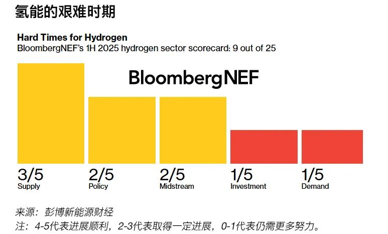 2025年上半年清潔氫行業(yè)的彭博新能源財(cái)經(jīng)記分卡得分