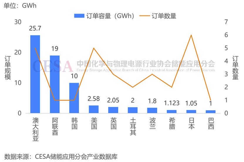 圖 2025年Q1中國企業(yè)儲能出海訂單規(guī)模Top10國家