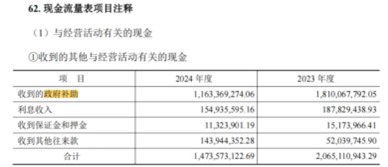從下表可以看到經(jīng)營活動收到的政府補助現(xiàn)金為11.63億元,較去年同期減少6.47億元,進一步驗證了政府補助的收緊趨勢。