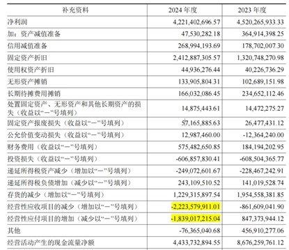 這兩項合計影響現(xiàn)金流約40億元,幾乎解釋了全部下降幅度(2024年比2023年減少42.5億元)。盡管經(jīng)營性現(xiàn)金流階段性承壓,但公司通過戰(zhàn)略性優(yōu)化客戶結構與供應鏈合作體系,為后續(xù)業(yè)務增長夯實基礎,短期資金調(diào)配有效轉(zhuǎn)化為長期市場競爭優(yōu)勢。