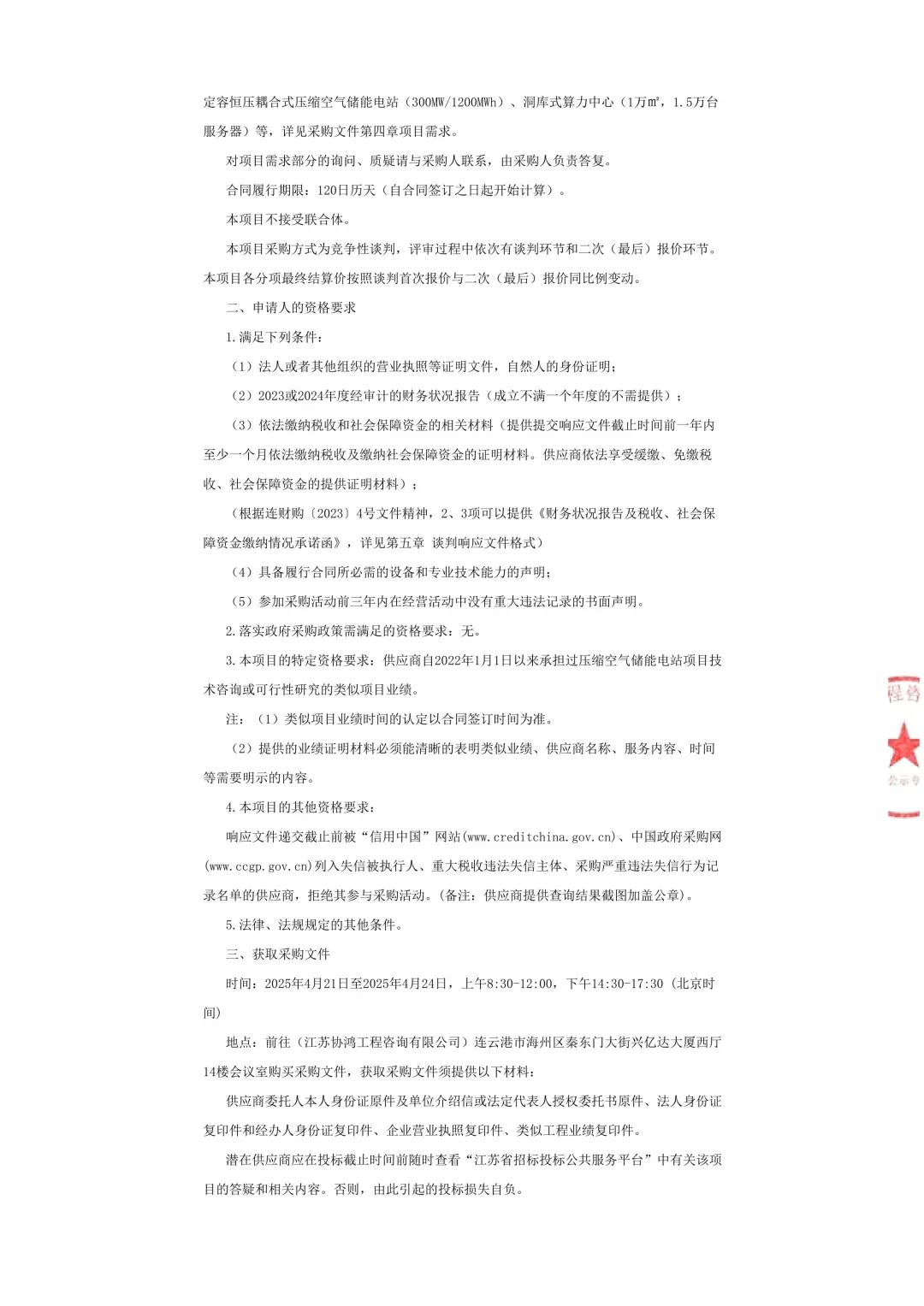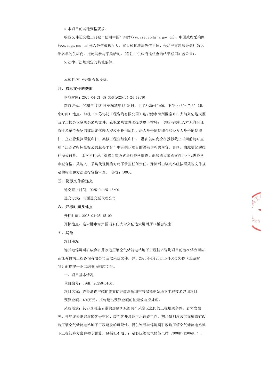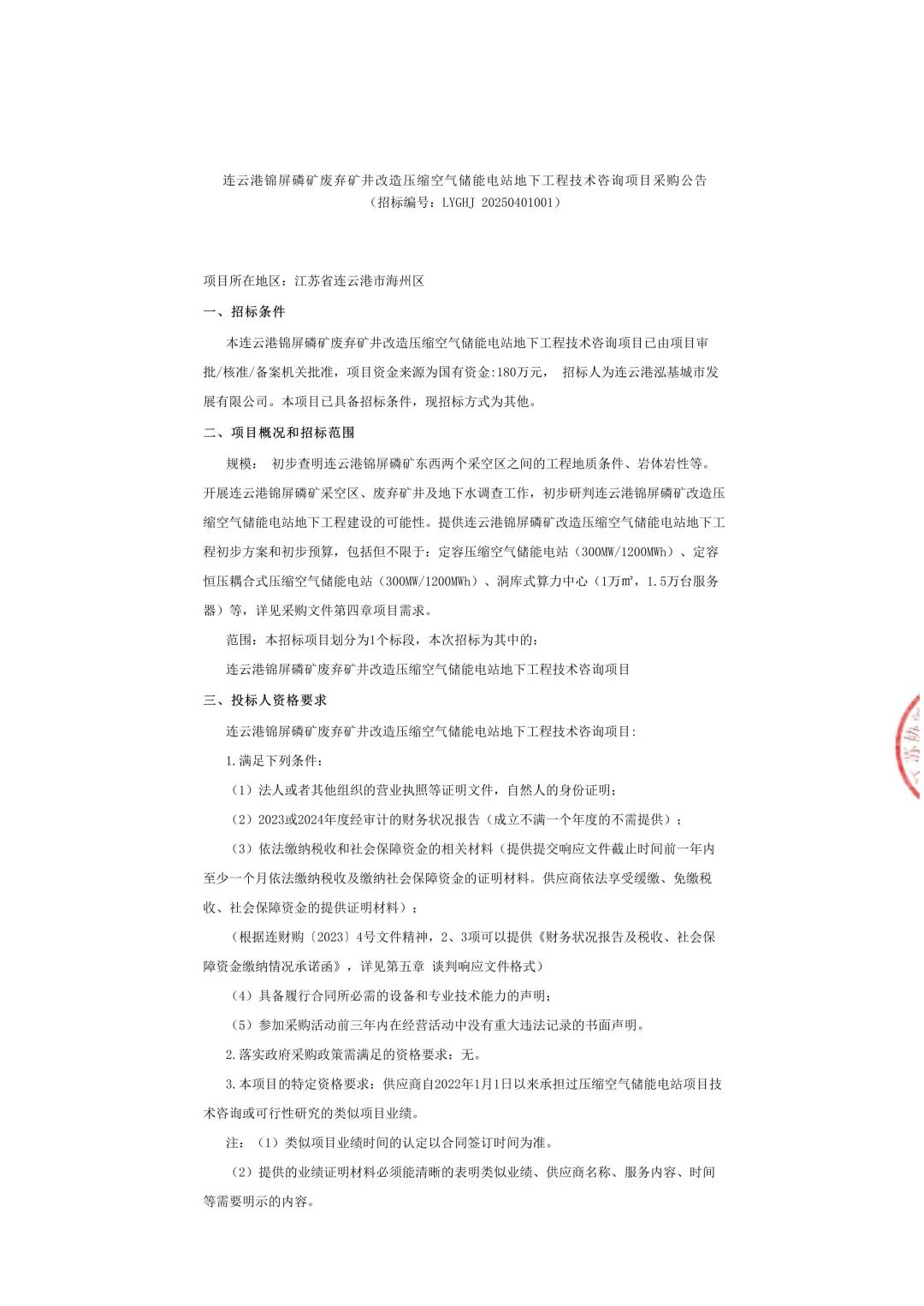 300MW/1200MWh!連云港錦屏磷礦廢棄礦井改造壓縮空氣儲能電站地下工程技術(shù)咨詢項目采購