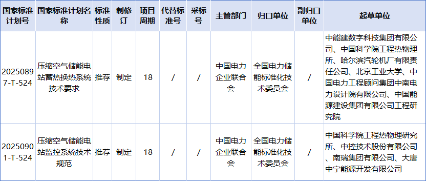 本批推薦性國家標(biāo)準(zhǔn)計(jì)劃共計(jì)296項(xiàng),其中制定241項(xiàng)、修訂55項(xiàng),推薦性國家標(biāo)準(zhǔn)285項(xiàng)、指導(dǎo)性技術(shù)文件11項(xiàng)。其中壓縮空氣儲(chǔ)能相關(guān)項(xiàng)目2個(gè),分別為:壓縮空氣儲(chǔ)能電站蓄熱換熱系統(tǒng)技術(shù)要求、壓縮空氣儲(chǔ)能電站監(jiān)控系統(tǒng)技術(shù)規(guī)范。