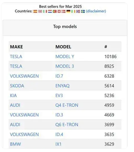 在2025年一季度,特斯拉作為全球純電車的引領(lǐng)者,依舊在全球市場表現(xiàn)出強(qiáng)勁的銷冠實(shí)力。