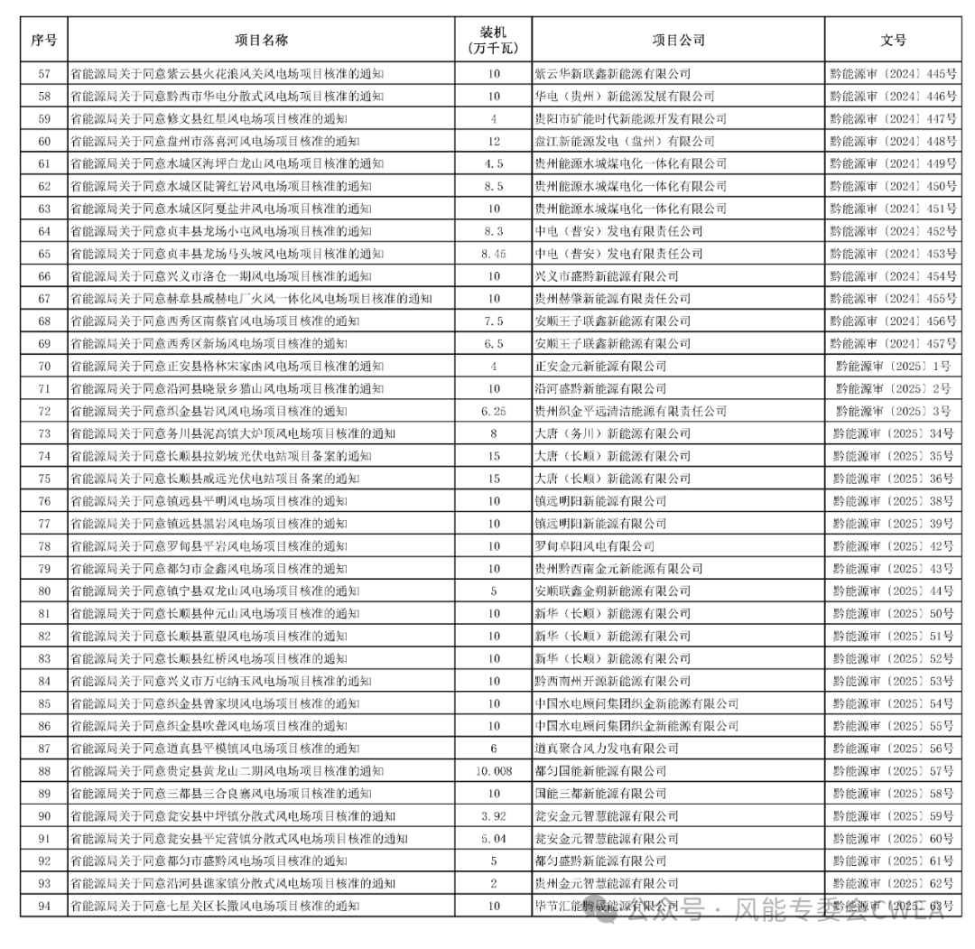 中國(guó)儲(chǔ)能網(wǎng)訊:4月24日,貴州省能源局2024年12月-2025年4月核準(zhǔn)備案風(fēng)電光伏發(fā)電項(xiàng)目情況公布,共公布了風(fēng)光項(xiàng)目94個(gè),其中,87個(gè)風(fēng)電項(xiàng)目總?cè)萘抗灿?jì)6.97GW,另有 7個(gè)光伏項(xiàng)目總?cè)萘抗灿?jì)1GW。