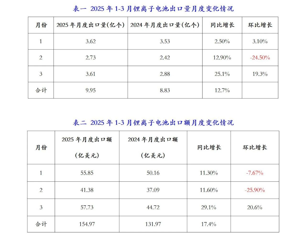 2025年3月我國(guó)鋰離子電池出口額57.73億美元