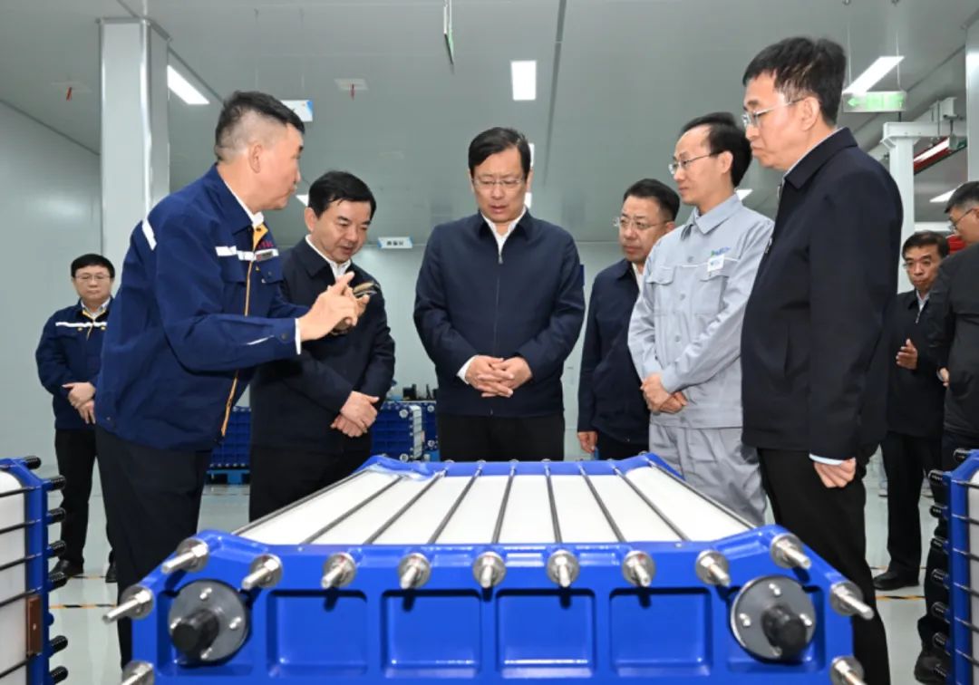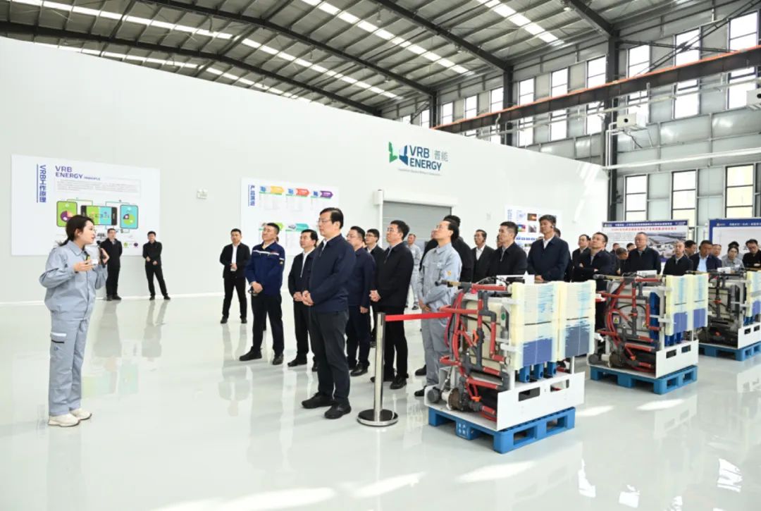 丁小強書記首先調(diào)研普能世紀(山西)新能源GW級電堆生產(chǎn)及系統(tǒng)集成項目,詳細了解全釩液流儲能電池的技術(shù)優(yōu)勢、生產(chǎn)工藝流程及市場應(yīng)用前景。在參觀過程中,公司技術(shù)專家詳細介紹了全釩液流電池儲能系統(tǒng)的工作原理,其安全可靠、循環(huán)壽命長、可深度充放電、資源友好等特點引起丁小強書記的高度關(guān)注,這些優(yōu)勢使其在大規(guī)模儲能領(lǐng)域具有不可替代的作用,為新能源的穩(wěn)定消納和電網(wǎng)安全運行提供堅實保障。丁小強書記對全釩液流儲能技術(shù)賦能電網(wǎng)柔性調(diào)節(jié)的實踐成效給予高度認可。同時,就全釩液流儲能系統(tǒng)能量轉(zhuǎn)換效率提升、成本降低途徑等核心課題提出了期待與要求。