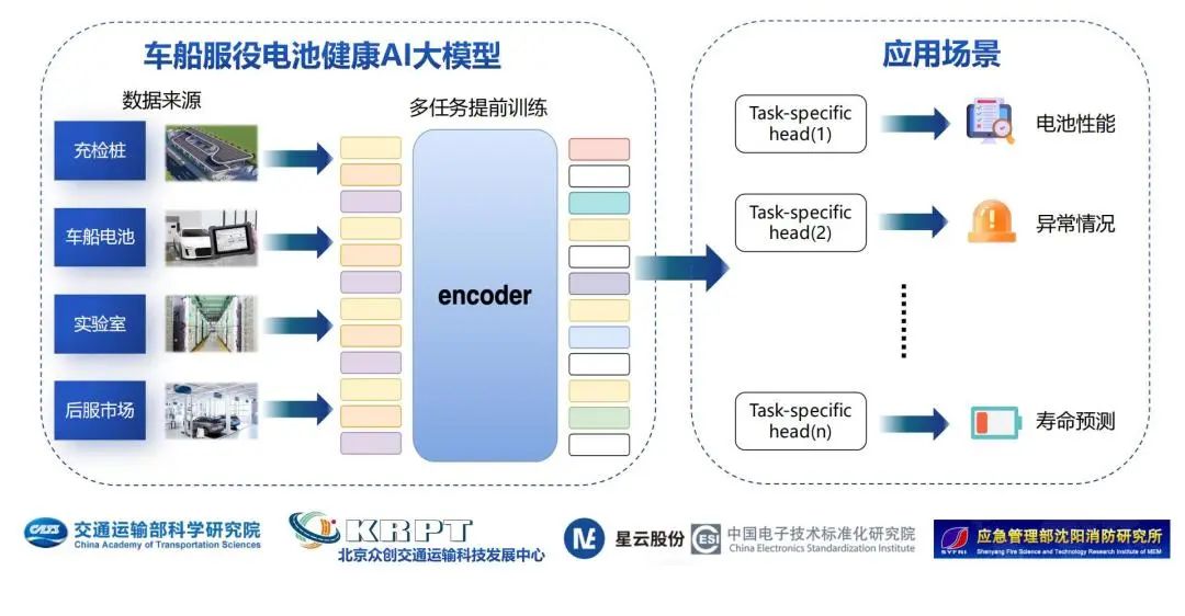 “車船服役電池健康A(chǔ)I大模型”是我院牽頭承擔(dān)“營運(yùn)車電池常態(tài)化數(shù)字智能監(jiān)控系統(tǒng)建設(shè)關(guān)鍵技術(shù)及標(biāo)準(zhǔn)推廣”課題的重要成果之一。自去年12月工作啟動(dòng)以來,課題組分別與北京、河北、福建等多地的公交、物流、網(wǎng)約車領(lǐng)域企業(yè)深入交流合作,融合電池電化學(xué)機(jī)理與海量數(shù)據(jù),研發(fā)構(gòu)建了多任務(wù)訓(xùn)練框架,實(shí)現(xiàn)對(duì)不同型號(hào)、材料、規(guī)格電池的通用適配,覆蓋840多種電池型號(hào),真正體現(xiàn)了“智能洞察、數(shù)據(jù)驅(qū)動(dòng)、AI賦能、優(yōu)化決策”的核心理念。目前大模型作為初代版本,可為電動(dòng)車船在充電過程中同步完成動(dòng)力電池的在線檢測(cè)。用戶及運(yùn)營企業(yè)可通過該大模型,了解電池健康及維護(hù)保養(yǎng)建議,通過人工智能大模型賦能保險(xiǎn)定價(jià)、二手車評(píng)估、維修維保等多個(gè)場(chǎng)景。