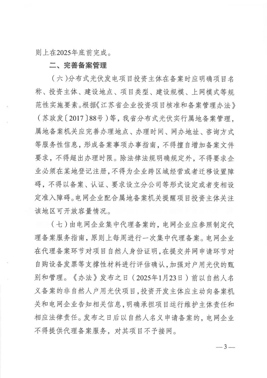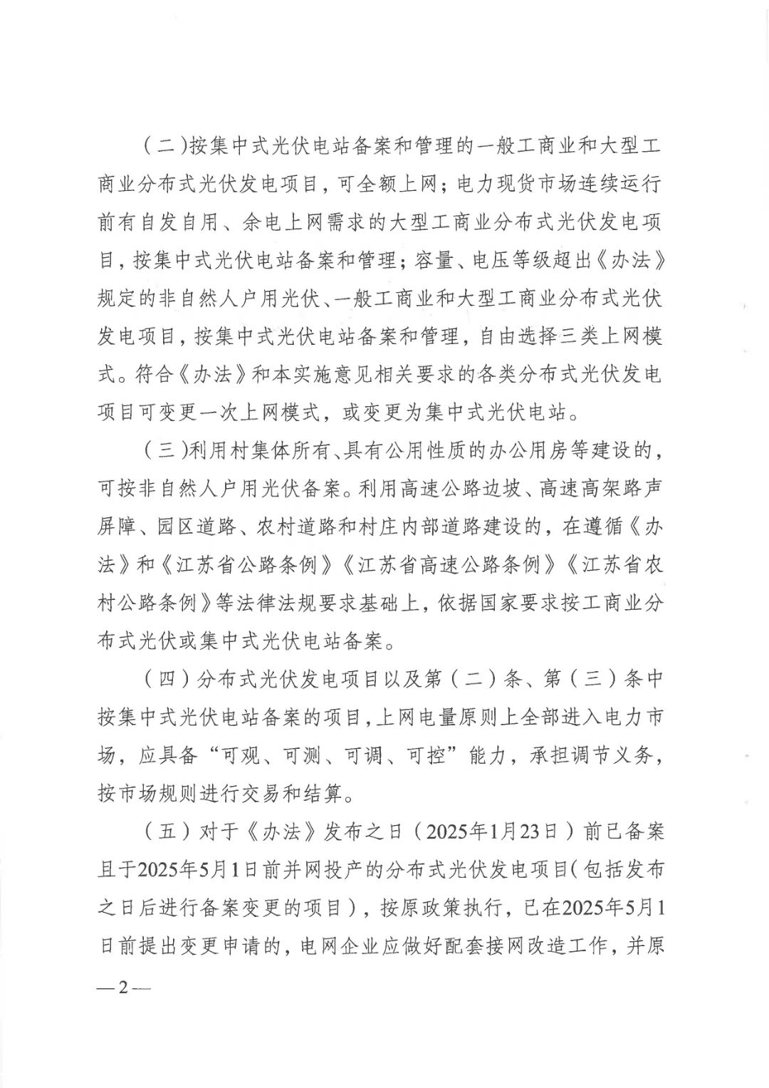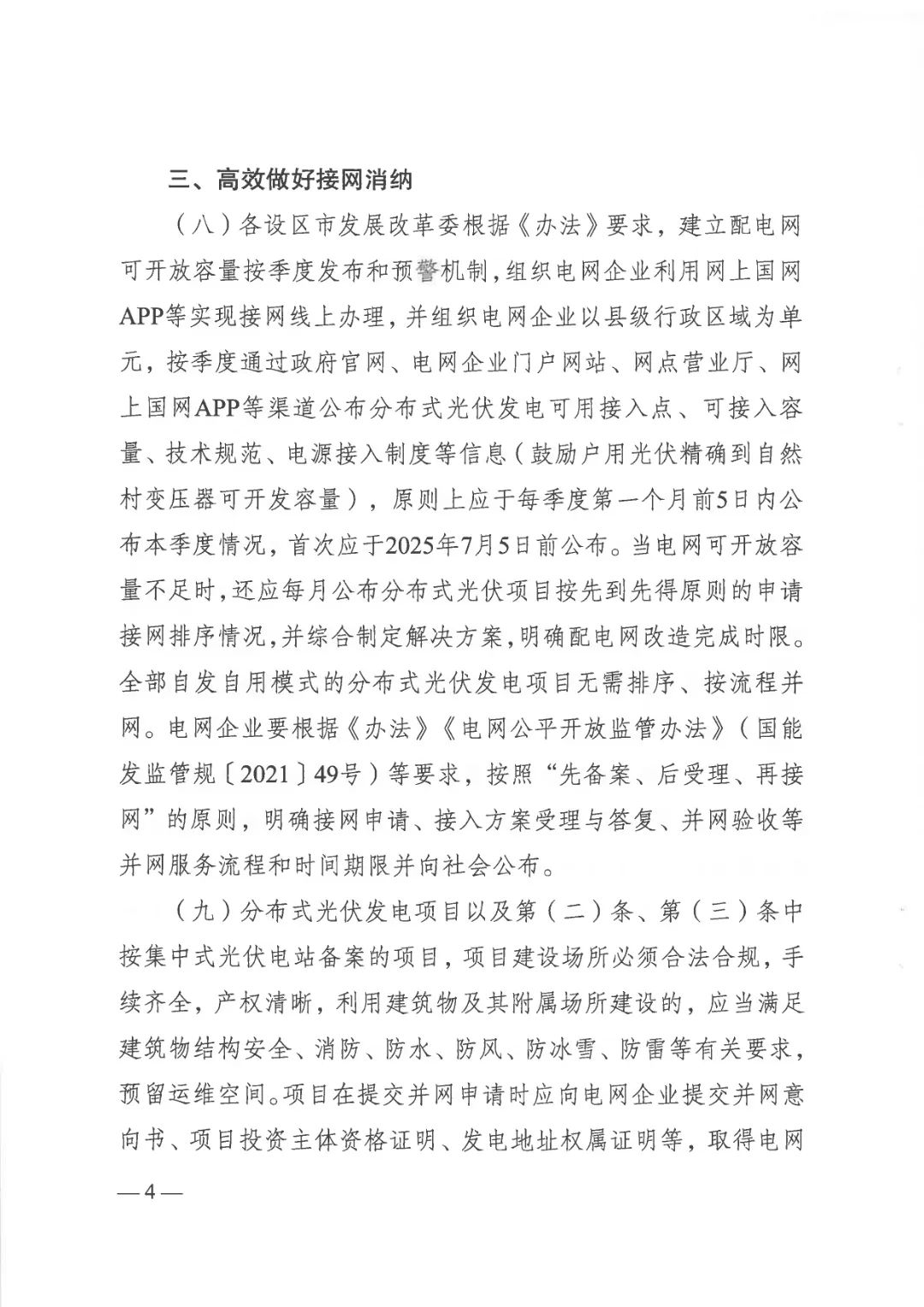 2025年1月23日前已備案且于2025年5月1日前并網(wǎng)投產(chǎn)的分布式光伏發(fā)電項目(包括發(fā)布之日后進行備案變更的項目),按原政策執(zhí)行,已在2025年5月1 日前提出變更申請的,電網(wǎng)企業(yè)應(yīng)做好配套接網(wǎng)改造工作,并原則上在2025年底前完成。