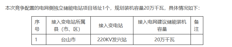關(guān)于臺山市發(fā)興站獨(dú)立儲能電站項(xiàng)目競爭配置的公告