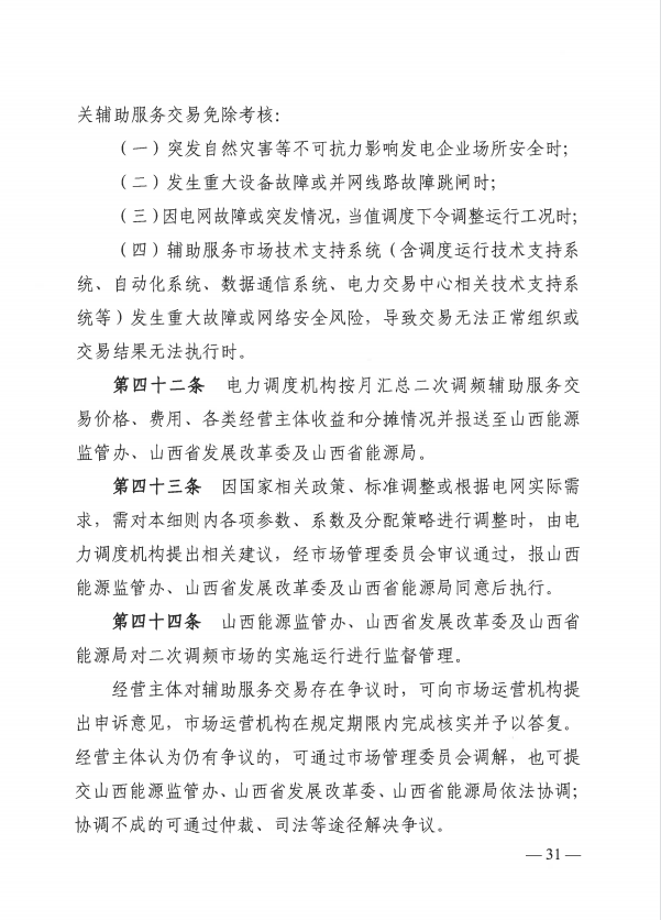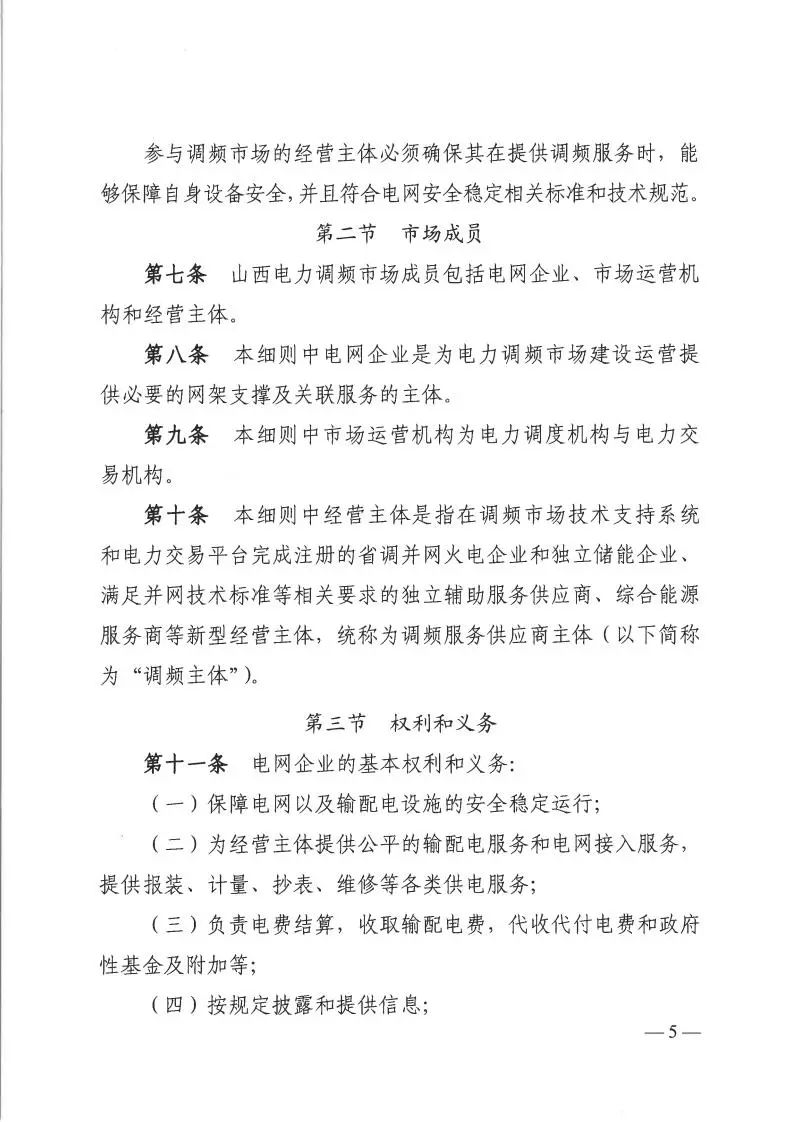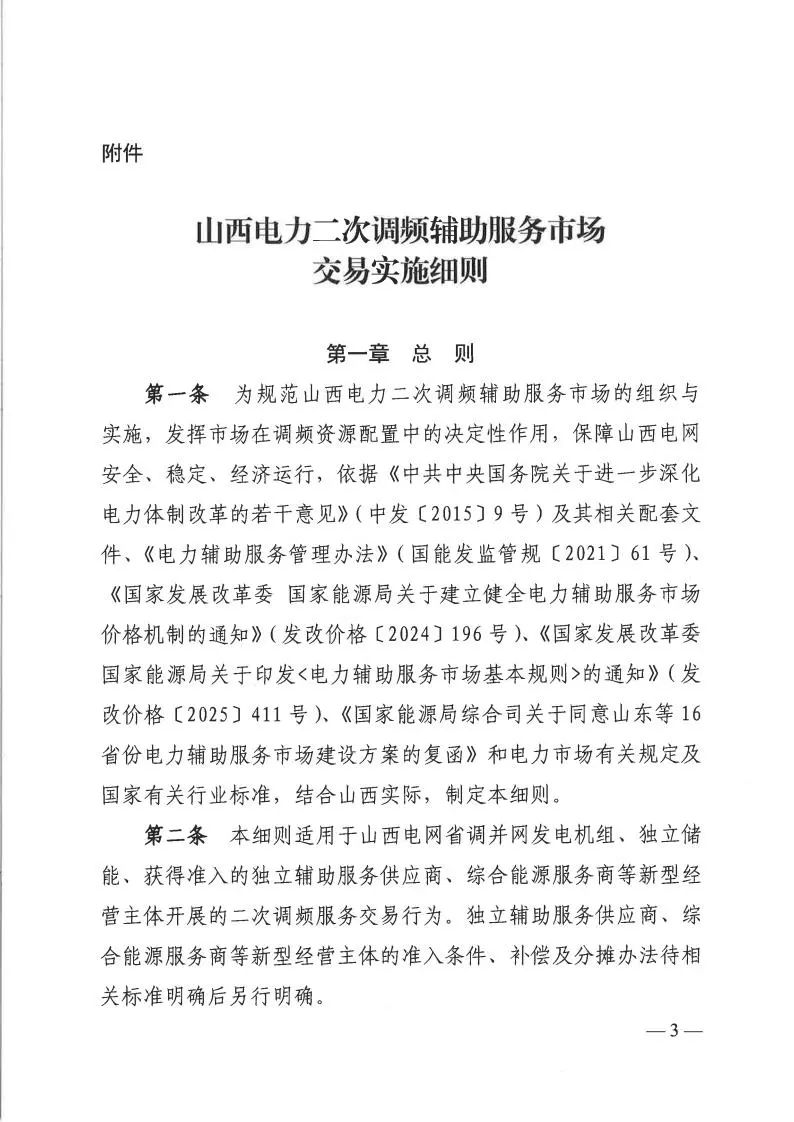 本細(xì)則適用于山西電網(wǎng)省調(diào)并網(wǎng)發(fā)電機組、獨立儲能、獲得準(zhǔn)入的獨立輔助服務(wù)供應(yīng)商、綜合能源服務(wù)商等新型經(jīng)營主體開展的二次調(diào)頻服務(wù)交易行為。
