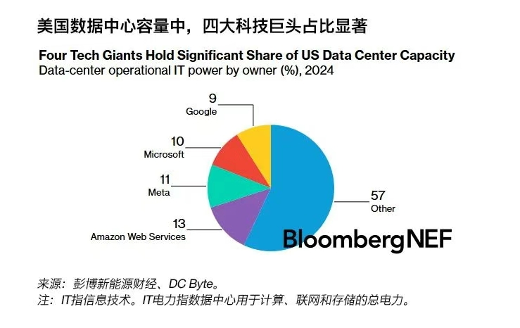中國(guó)儲(chǔ)能網(wǎng)訊:目前,Amazon Web Services(AWS)、谷歌、Meta和微軟四家公司控制著美國(guó)近一半的數(shù)據(jù)中心容量,且在未來建設(shè)中占據(jù)主導(dǎo)地位,從而形成了一個(gè)具有獨(dú)特影響力的電力需求群體。這使它們對(duì)未來十年的能源基礎(chǔ)設(shè)施規(guī)劃和投資具有重大影響力。