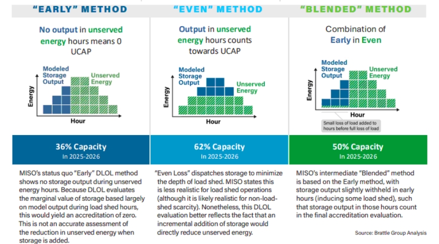 該報告澄清說:“美國中大陸?yīng)毩⑾到y(tǒng)運營商(MISO)可以使用能源公平或容量公平方法更好地建模和支持儲能部署,如下圖所示。這種方法能更準確地反映儲能系統(tǒng)的實際性能,通過使規(guī)劃和資源充足性要求與電力系統(tǒng)條件相一致,增強電網(wǎng)運營彈性?!?