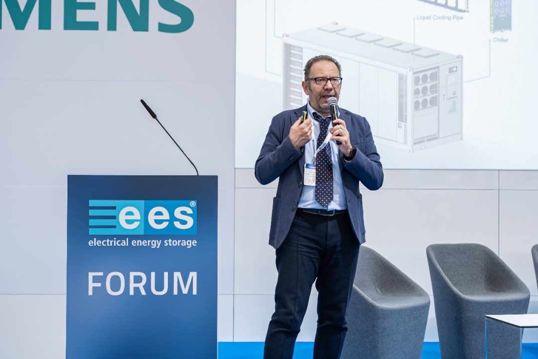5月7日,展會(huì)首日,海博思創(chuàng)EMEA區(qū)域技術(shù)副總裁兼南歐國(guó)家經(jīng)理Stefano G. Alberici博士在大會(huì)論壇發(fā)表主題演講,系統(tǒng)介紹了海博思創(chuàng)的創(chuàng)新大儲(chǔ)產(chǎn)品與解決方案。他重點(diǎn)展示了公司在液冷技術(shù)、消防安全及熱管理領(lǐng)域的領(lǐng)先優(yōu)勢(shì),并分享了近年在歐洲多國(guó)成功交付的標(biāo)桿項(xiàng)目案例,生動(dòng)詮釋了海博思創(chuàng)推動(dòng)歐洲能源轉(zhuǎn)型的實(shí)踐成果。