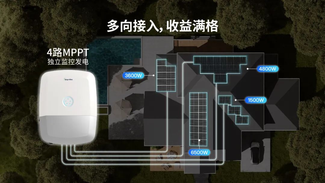 禾邁HIT系列混合逆變器憑借4路獨立MPPT精準(zhǔn)追蹤光伏組件的最大功率點輸出,完美適配多朝向復(fù)雜屋頂結(jié)構(gòu),確保各個方位的組件都能實現(xiàn)高效發(fā)電。其高達(dá)98.5%的峰值轉(zhuǎn)換效率,顯著提升了系統(tǒng)整體發(fā)電性能,有效解決了多臺空調(diào)長時間運行帶來的高耗電難題。