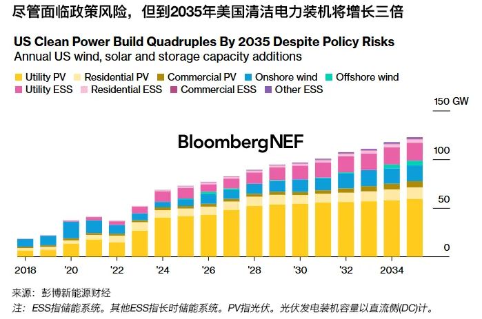 由于高關(guān)稅和可能削減稅收抵免,美國清潔能源項目正面臨多重風(fēng)險。然而,自2023年以來,電力需求重新增長已證明光伏和風(fēng)電合同價格上漲是合理的,這蓋過了裝機方面的政策風(fēng)險。盡管美國總統(tǒng)特朗普努力重振化石燃料,但實現(xiàn)美國在人工智能(AI)領(lǐng)域的雄心將需要大量新增清潔電力。