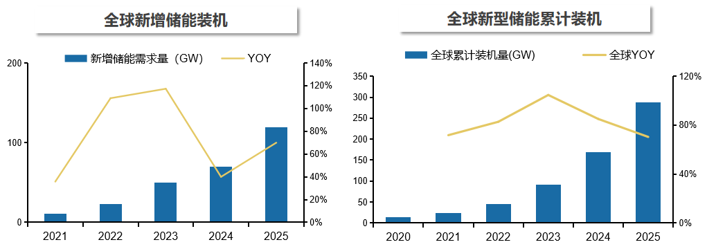 圖1 2020—2025年全球新型儲能新增裝機(jī)和累計裝機(jī)情況(2025年為預(yù)測值)