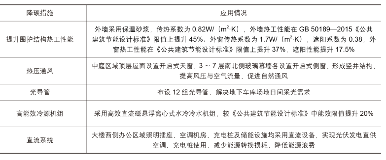 需求側(cè)降碳,是推進綠色低碳發(fā)展的首要任務(wù)。根據(jù)項目所在地域氣候特點,綜合采用多項節(jié)能降碳措施,共降低建筑能耗410781kW·h/a,減少碳排放262.04tCO2/a,從而在建筑需求側(cè)控制碳排放強度。